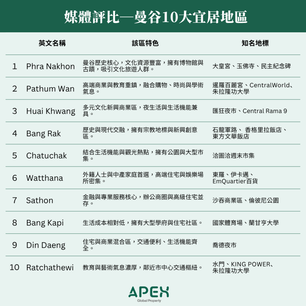 泰國媒體評比曼谷10大宜居區域