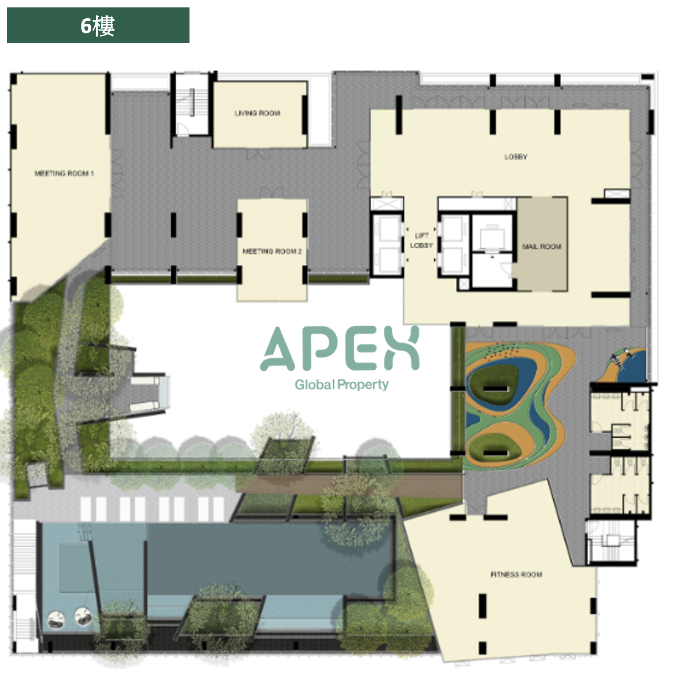 - 6樓 : 公共設施 (24小時健身房、游泳池)