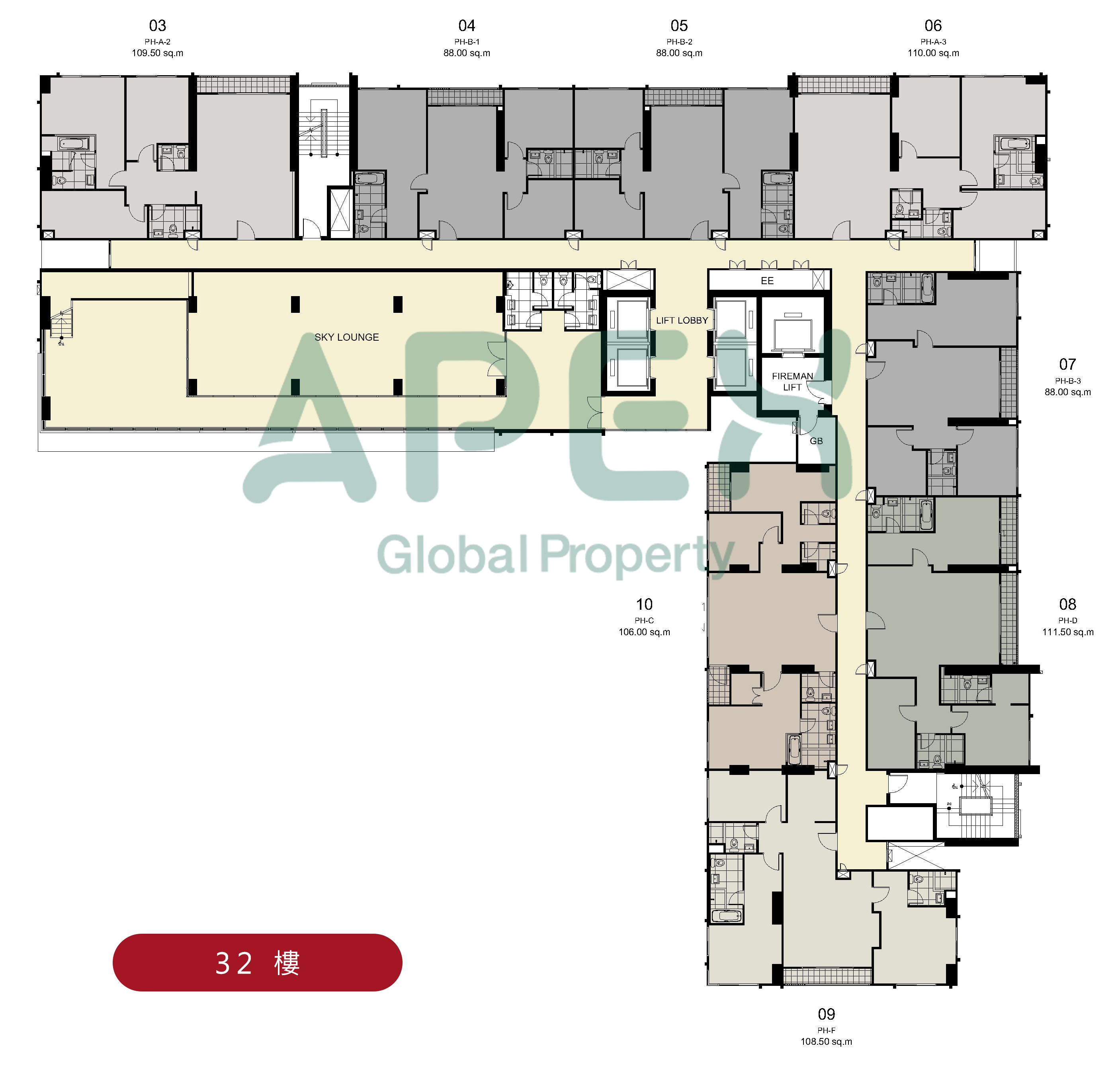 - 住宅大樓一棟,共642住宅、3戶店面。