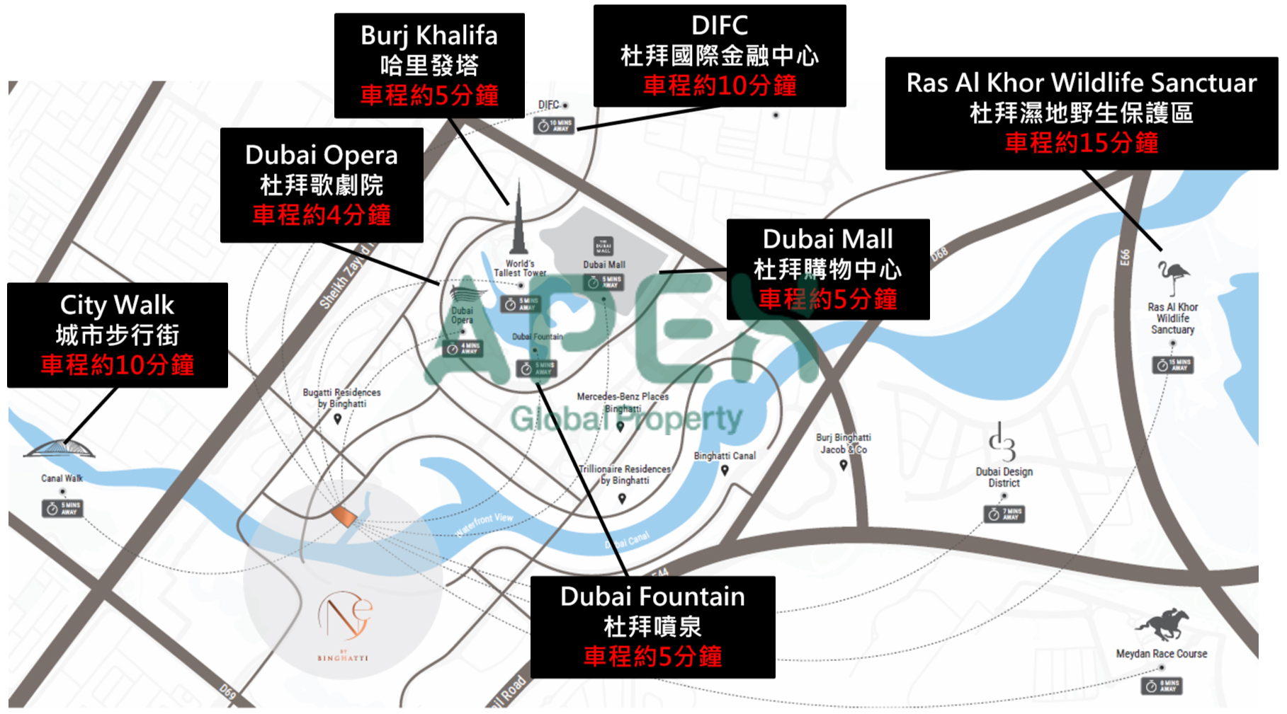 - 獨一無二地理位置: 杜拜精華地區商務港,佇立運河河畔,百萬市景、全球地標哈里發塔一覽無遺,緊鄰頂尖金融白領聚集商務中心地段。