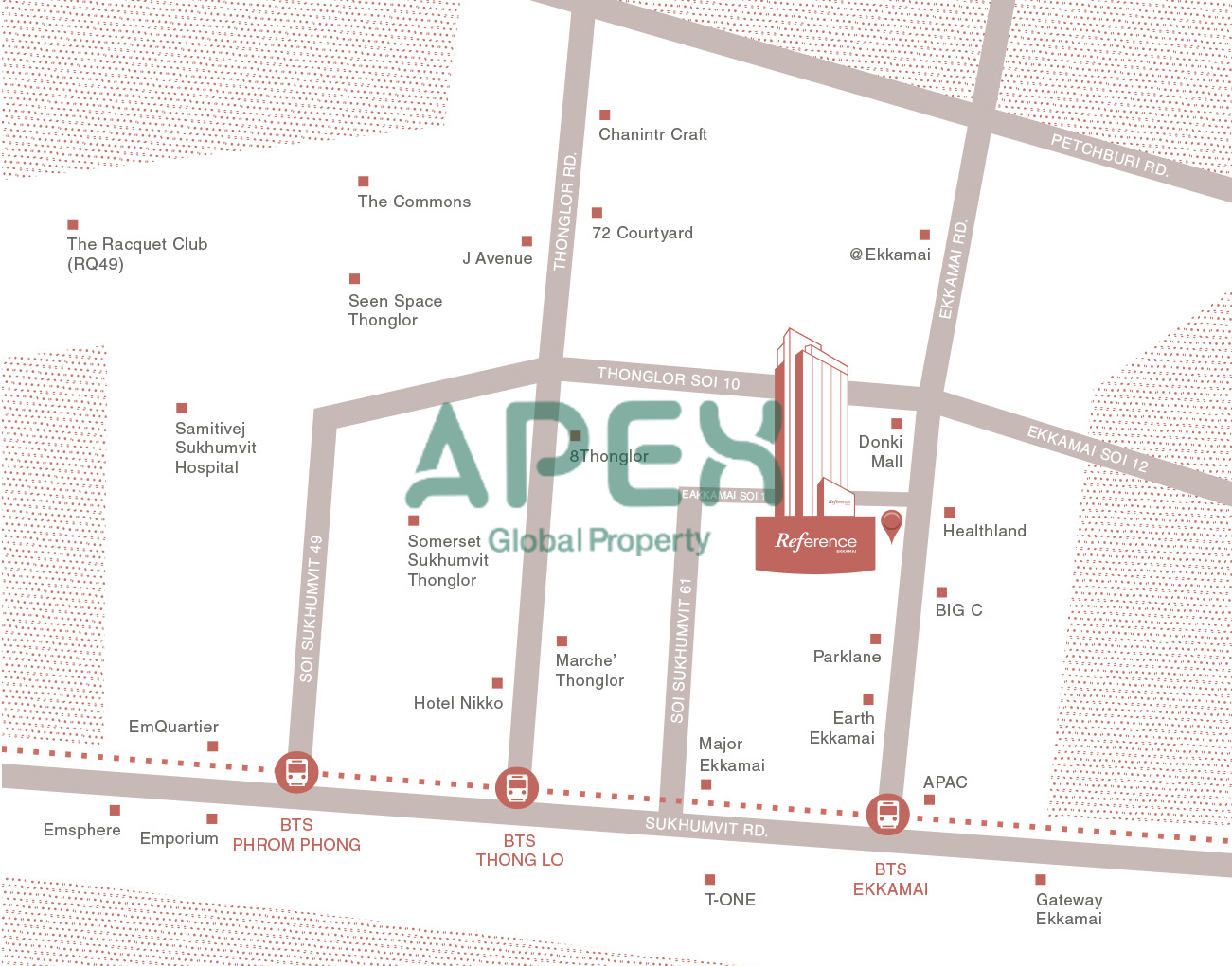 Reference Ekkamai 是位於曼谷 Ekkamai 市中心的全新建案,由泰國前十大開發商 SC ASSET 推出,預計於2027年第二季完工。Ekkamai 區是曼谷的富人區,也是日商區,擁有高密度的外資企業與國際學校,為高端租賃需求提供穩定保障。周邊設施齊全,包括米其林餐廳、潮流咖啡廳、大型超市與購物中心,生活機能極為便利。該區更是日本人聚集的地方,許多日本餐廳與商店營造出濃厚的異國氛圍。Reference Ekkamai 是低密度住宅,每層僅11戶,擁有極高的居住隱私與質感,且隨著2027年交屋,該地段價格預計將大幅上漲。